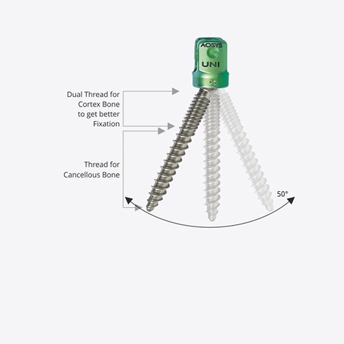 The unique UNI Planar Screw design is fast becoming the preferred anchoring screw for the use in complex scoliotic deformities. Combining the rod-alignment capabilities of a polyaxial screw with the vertebral body control of a Monoaxial screw. The Uniplanar screw is changing the way surgeons facilitate global correction of complex spinal deformities.