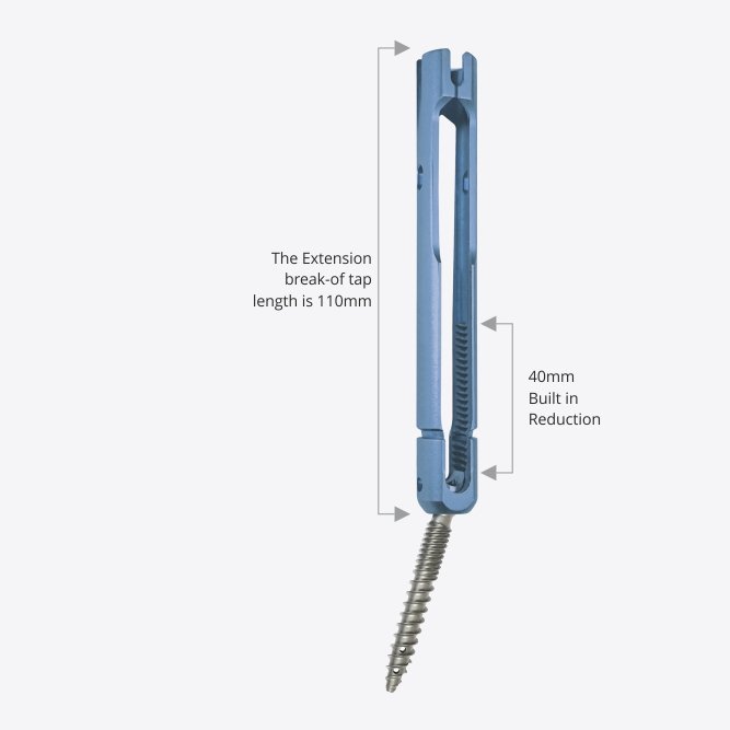The extension break-of tap length is 110mm, which protrudes from skin and simplifies matching instruments