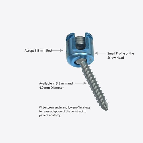 The Posterior cervical screw is an implants used for the Posterior stabilization of the cervical spine. Made of medical-grade titanium, provides good strength, biocompatibility and fixation. The low-profile nature reduces soft tissue irritations, and the optimized angulation of the screw creates a more stable environment promoting fusion rates. It provides stable support with a wide range of cervical screws and can be used for the treatment of degenerative disc disease, trauma or deformities.